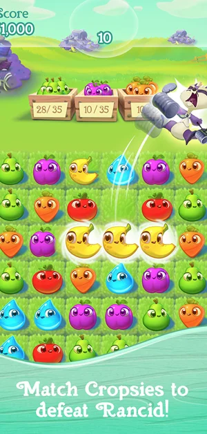 The Cropsies are back and they're bigger than ever! Rancid Raccoon is up to his old tricks again. Ruining the harmony of rural life by winning all of the Country Shows and claiming the prize money for his sneaky self. The Farm Heroes know he's cheating and it's up to you to help them defeat him.